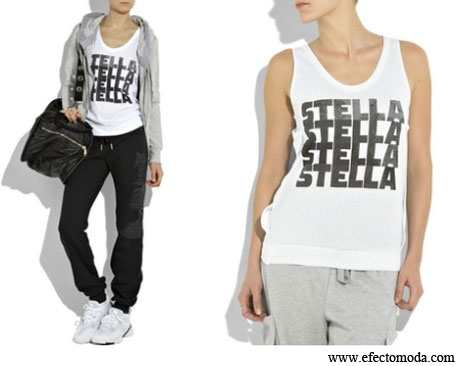 En la parte de abajo te puedes poner un pantalón ajustado si es lo que te gusta o uno más ancho. Cuando te lo pruebes salta un poco para asegurarte de que no se te vaya a caer en medio del entrenamiento. Te recomiendo una apariencia única y muy cómoda como esta de la línea de Adidas by Stella McCartney, que tiene una camiseta blanca y negra, un pantalón no muy ajustado y un bolso donde puedas llevar todo lo que necesites.