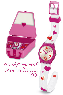 Me gusta la edición especial para el 14 de febrero 2009. La caja en que el reloj viene presentado puede ser decorada con calcomanías incluidas en el paquete y puede servir para guardar el mismo reloj o algunas alhajas pequeñas. Es uno de ésos regalos que despiertan a la niña que todas llevamos dentro.