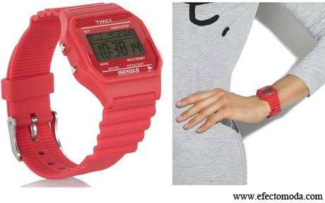 Este reloj digital es un ejemplo de esos accesorios que a veces se evitan, además, por brillantes. Sabemos ya que el color rojo es uno de los más llamativos, aun cuando se lleva en una pieza pequeña. Puedes usar eso a tu favor y hacer con él que tu atuendo total luzca con mayor alegría y ánimo. Si por ejemplo tu outfit se conforma por prendas color gris, negro y blanco, un TIME80 c0mo el de la imagen puede ser buena idea.