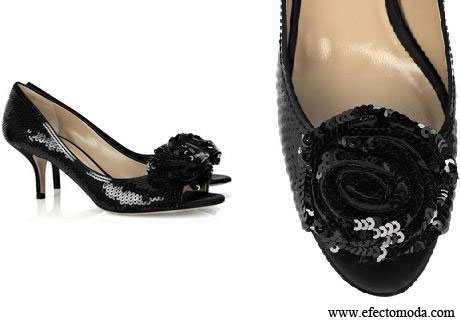 Ese es el caso de este par de pumps, que por medio de sus hileras de lentejuela le dan luminosidad al atuendo en el que se les incluye. El ser de tipo peep-toe los hace propicios incluso para outfits matutinos, de cocktail. La flor que luce en cada uno los hace más llamativos aún, pero a la vez compensa un poco la informalidad y ligereza de dejar los dedos de los pies al descubierto.