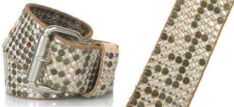 Con un diseño de apariencia metálica y múltiples lunares alineados, este cinturón es una opción que seguro te gustará para atuendos de apariencia masculina.