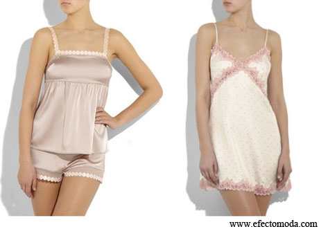 Te aconsejo una camisola como esta de Stella McCartney, que está hecha de una mezcla de seda que estira un poco para mayor comodidad y que viene con unos pantalones cortos que son igualmente cómodos y sensuales. También este vestido de noche de Juicy Couture que tiene algunos pedazos con un encaje que hace que se vea aún más sensual, y es de un color rosa y blanco que hacen que la feminidad esté en su punto máximo.