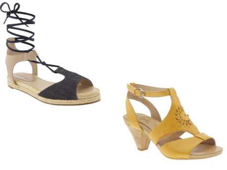 También te recomiendo estas sandalias de color amarillo de Naya que tienen una abertura en los dedos y son de amarrar. Estas sandalias además de ser muy hermosas y de combinar con varios estilos de vestidos en estos meses de verano, fueron creadas totalmente con materiales naturales y amigables con el medio ambiente, con una suela hecha de corcho y de caucho que hace que tus pasos sean suaves y cómodos.