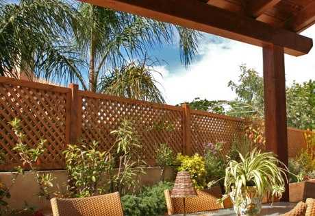 Lo más importante a tener en cuenta es que entre las columnas debes colocar celosías de madera , que si sigues las medidas anteriores pueden ser de 2×2 metros y separadas 5 centímetros de la pared.