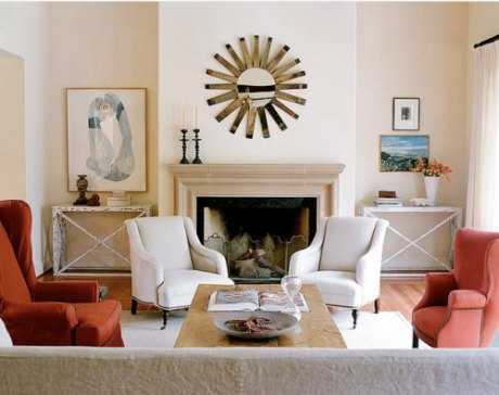 Debes pensar en ese elemento como si fuera el que te da la bienvenida y a tus invitados a este espacio, por lo que debes poner los muebles directamente en frente de este elemento decorativo.