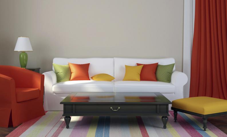 También, además de los cojines, puedes colocar mantas de tonos coloridos, para darle un aire juvenil a la estancia o decantarte por los tonos oscuros, si los muebles que acompañan al sofá son de wengué, por ejemplo.