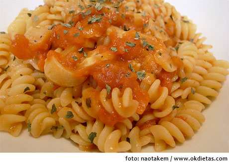Fideos tirabuzones con pimiento (300 kcal. por porción)