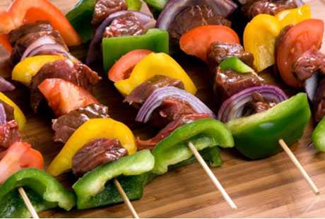 La carne a la parrilla o asada nos resulta muy saludable ya que no se cocina con agregados de grasa y se la puede complementar con verduras para acompañar, como en el caso de las brochetas que os proponemos.