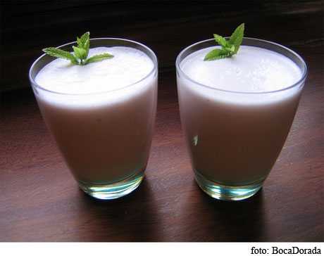 Colocar todos los ingredientes en la procesadora, o licuadora, durante 5 minutos, hasta obtener un licuado espumoso aireado y homogéneo. Servir en vaso de trago largo y beber inmediatamente. Es ideal para desayunar ya que como dijimos antes, es una excelente fuente para recuperar energía en el organismo, luego de varias horas de ayuno.