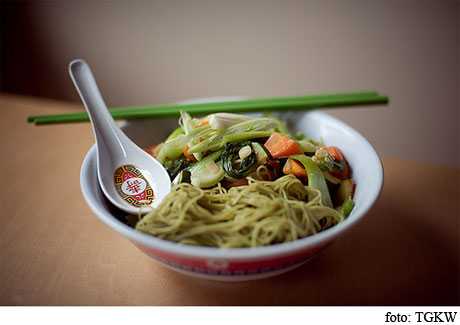 Calentamos el wok a fuego máximo durante unos 3 minutos y añadiremos el aceite, para lubricar correctamente todas las paredes del mismo y el fondo, paso siguiente colocaremos allí el diente de ajo, y llevamos nuevamente a fuego moderado, colocaremos luego todos los vegetales cortados en juliana y removemos, para que no se quemen hasta que los mismos estén blandos, cambien a un tono más claro y hayan perdido firmeza. En ese momento agregaremos las pastas que hemos reservado y la salsa de soja para cocinar durante 5 minutos, más condimentamos a gusto y servimos en plato hondo.