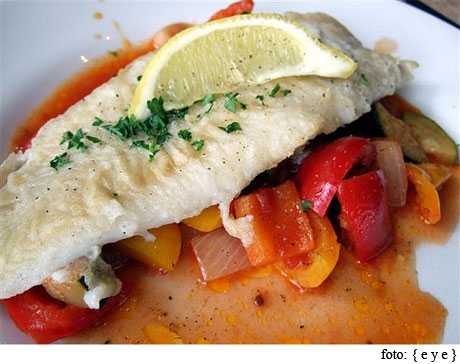 - Brótola con pimiento morrón: tomaremos un filete de brótola y colocaremos junto al ají rojo picado en julianas, cebolla de verdeo y ajo picado en la plancha, una vez cocidos agregaremos jengibre y semillas de sésamo para espolvorear, Nos aportará unas 270 calorías, 13,5 gramos de grasas totales, 2 gramos de grasas saturadas y 140 gramos de sodio.
