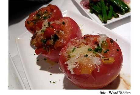 - Tomates rellenos, absolutamente saludable, nos aporta en cada porción unas 160 calorías, 5 gramos de grasas totales, y 11 gramos de sodio, para prepararlos debemos tomar un tomate y partirlo a la mitad, lo rellenamos con 2 cucharadas de fideos hervidos salteados con pimiento morrón rojo, y cebollitas moradas, para aderezar, usamos una cucharada de queso untable desnatado.