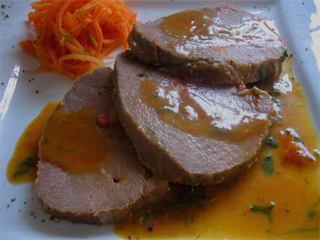 - Planto principal: Carne mechada con salsa de ciruelas y oporto (400 calorías).