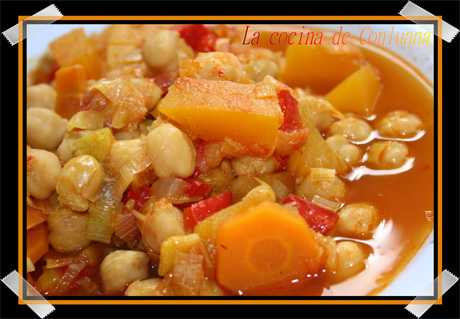 Receta de garbanzos con calabaza al azafrán.