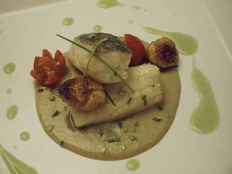 En el momento de servir acompañar con una vinagreta realizada con pequeños brotes de puerros, pimientos verdes cortados en juliana, trocitos de tomates y maíz escurrido, aliñar con aceite, sal y vinagre de sidra.