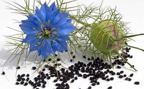 Esta planta florece en septiembre y lo que se utiliza de ella son las semillas las cuales están compuestas de taninos, aceites, saponina, timoquinona y nigelón. Estos componentes favorecen las propiedades antidiarreicas, hepáticas, digestivas, pectorales y antiespasmódicas.