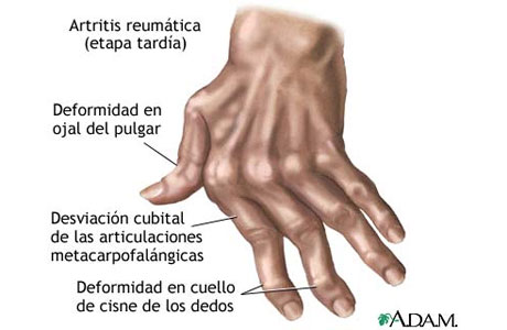 La artritis reumatoide es una de las formas que ataca la artritis y causante de un dolor profundo, inflamación y rigidez que afecta principalmente llevando a la perdida de las funciones articulares. Puede afectar cualquiera de las articulaciones del cuerpo pero suele ser muy común en las muñecas y en las manos, sobre todo afectando los dedos. Es una enfermedad más frecuente en las mujeres que en los hombres y puede aparecer entre los 25 y 55 años de edad.