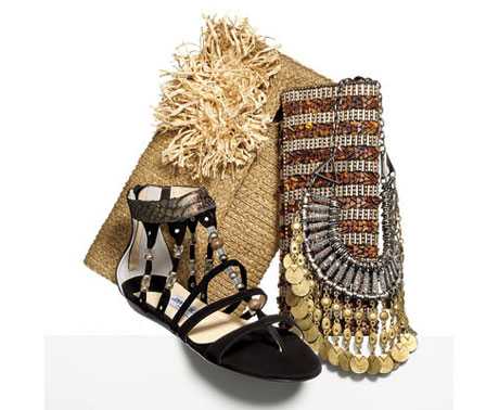 Encontraremos zapatos, sandalias, bailarinas, en todos los diseños, con plataformas, tacos tallados y escultóricos, en dorado, cobre y bronce, que son ideales para destacar un atuendo de noche, realzando la belleza femenina. Los bolsos no solamente se presentan en éstos tonos sino que además vienen acompañados con cadenas, flecos, y tachas que aportan un toque ideal y muy sobrio.