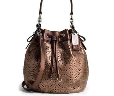 Y aunando calidad y modernidad los bolsos Coach otoño 2011, se apartarán ya de los colores tendencia veraniega para recuperar los tonos neutros que tanto nos gustan y tanto combinan con todo. Un bolso como el de la imagen de arriba en dorado que se inclina hacia el marrón es ideal para muchos combinados de prendas y complementos.