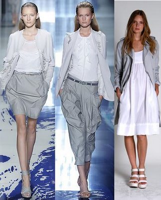 Explota la gama de tonos gris perla y combínala con blanco. El resultado será fresco, elegante y actual. En esos tonos, incluso puedes usar prendas más arriesgadas, como los pantalones harem.